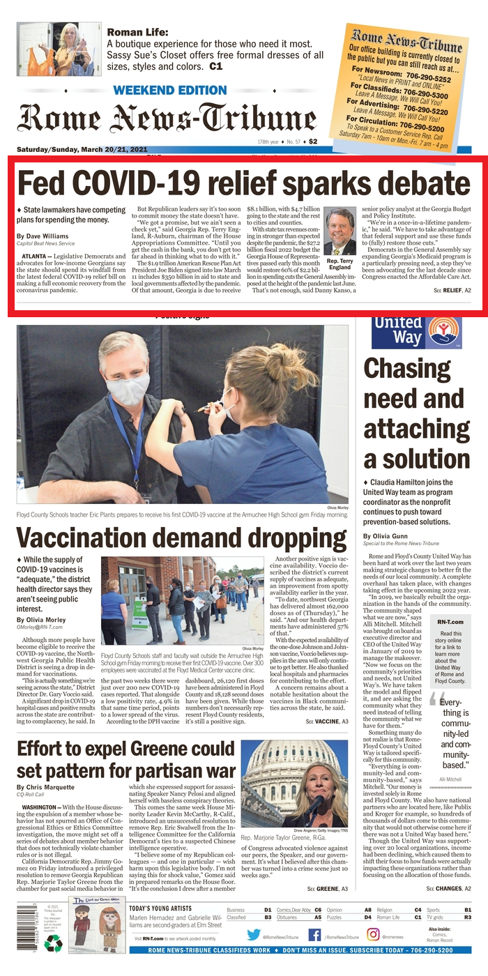 Rome News-Tribune: Federal COVID-19 relief funds spark debate in General Assembly